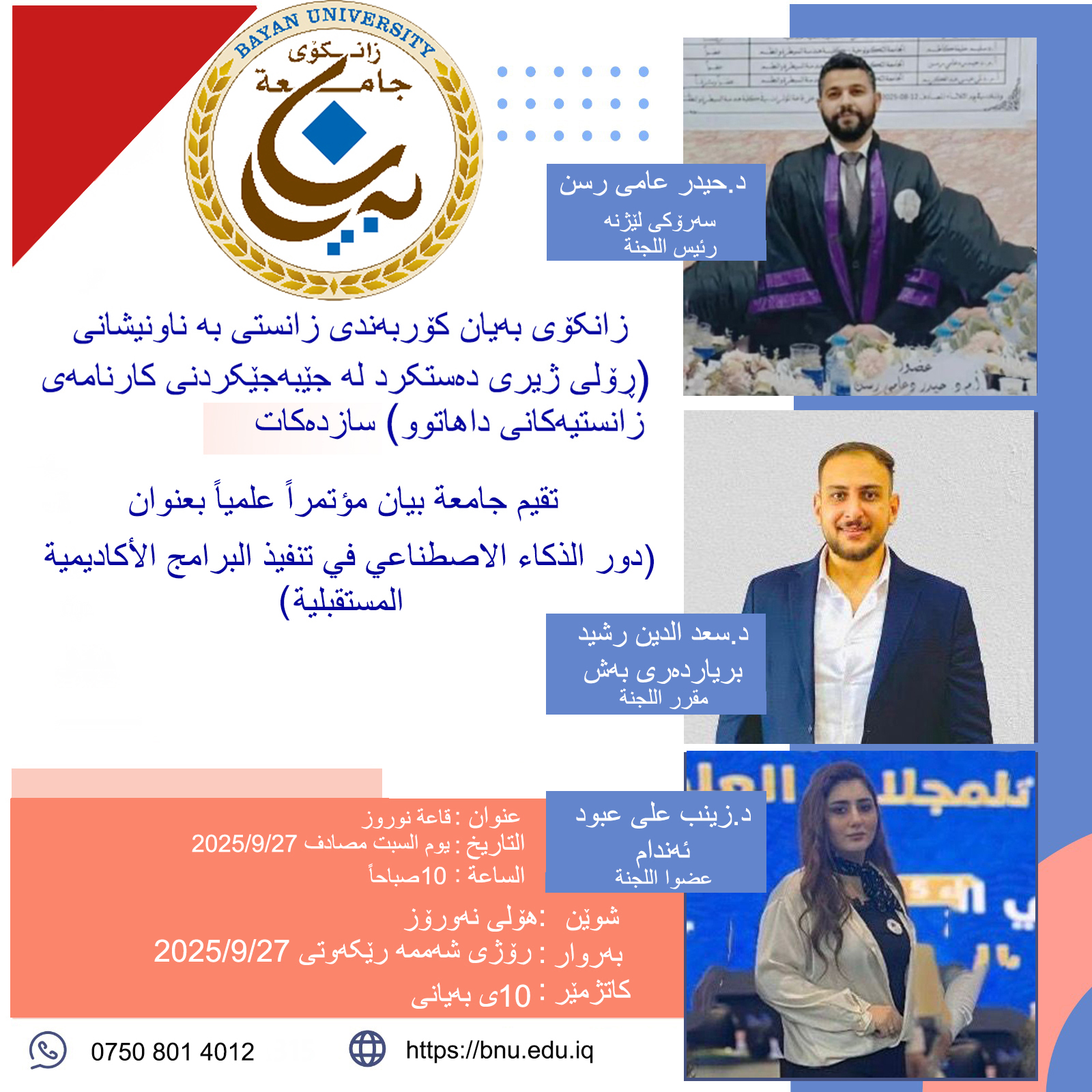 زانکۆى بەیان کۆربەندى زانستى بە ناونیشانى (رۆلى ژیرى دەستکرد لە جێبەجێکردنى کارنامەى زانستیەکانى داهاتوو) سازدەکات
